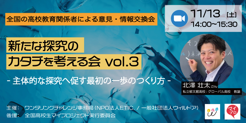 【高校教員・学校関係者向け】新たな探究のカタチを考える会vol3-主体的な探究へ促す最初の一歩のつくり方-